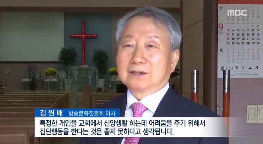 김원배 이사의 “특정한 개인을 교회에서 신앙생활하는데 어려움을 주기 위해서 집단행동을 한다는 것은 좋지 못하다고 생각됩니다. 역대 어떤 정권이나 어떤 노조도 개인의 사회적인 활동을 중지시키기 위해서 (이런 일은 하지 않았습니다.)”라는 황당한 발언 역시 빠짐없이 소개되었습니다. 이전 정권의 국정원과 이에 동조한 방송사가 연예인들과 언론인들을 대상으로 블랙리스트를 만들어 이들을 방송에서 배제해온 사실이 드러난 상황에서, 자신이 다니는 교회 앞 피켓팅 한 번에 ‘역대 어느 정권도 이렇게는 하지 않았다’며 우는 소리를 하는 김 이사나, 신이 나서 이를 그대로 전달한 MBC나 수준은 비슷해 보입니다.